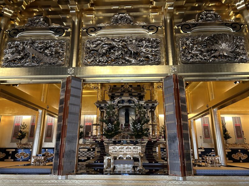 Pick up a sculpture guide map and explore the temple with a “viewing the carvings” perspective to discover a whole new world. The carvings on the gates and pillars, the lion-like carvings on the ends of the beams above the gates, the maple and deer carvings in the Goeido Hall, and more—all are masterpieces by carvers from Inami, Toyama Prefecture. The Amida Hall features realistic carvings of plants and flowers, while the Goeido Hall showcases imaginative subjects. The celestial maidens and Kalavinka birds (with the upper body of a beautiful woman and the lower body of a bird) on the transoms of the Goeido Hall are truly captivating.