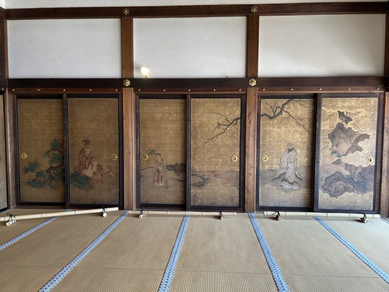 The beautiful gold fusuma sliding door paintings and the gold wall paintings were the work of Kano Eino and Kano Masunobu. The temple truly felt connected to the Imperial family.