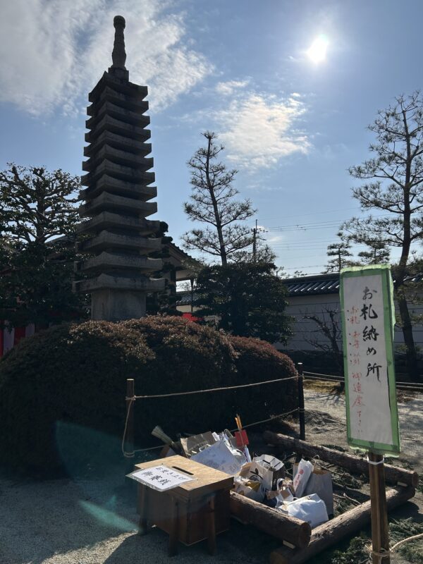 Inside the main hall, powerful-looking Buddhist statues, including a statue of Fudō Myōō, lined the space. The largest daikon radish I had ever seen was on display as an offering, alongside apples and mandarin oranges.